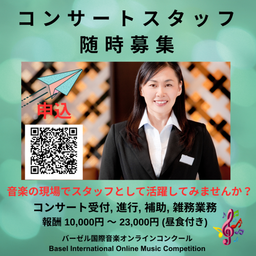 バーゼル音楽祭 春 20262026年3月28日(土) 12:30 開場 13:00 開演 会場 音楽の友ホール 前売券 3,500円 / 当日券 4,000円 電子チケット TEKET ← click 紙チケットもご用意しております チケットのお問い合わせ musik.bs.europa@gmail.com Tel 070 - 4105 - 6086 (ショートメール対応) 主催 バーゼル国際音楽オンラインコンクール 一般社団法人Supraleitung Methode Japan®︎ 後援 スイス式発声法研究会 スイス・日本支部 |