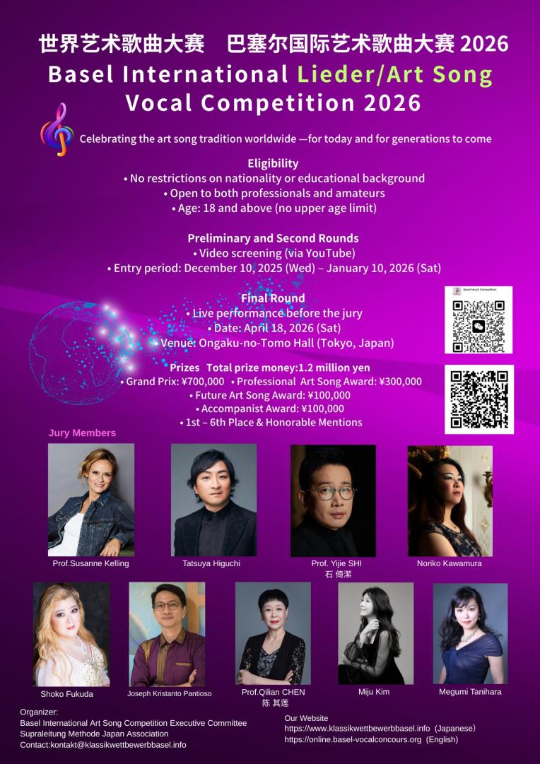 •主办方:巴塞尔国际艺术歌曲比赛执行委员会、日本Supraleitung Methode协会(Supraleitung Methode Japan® Association)